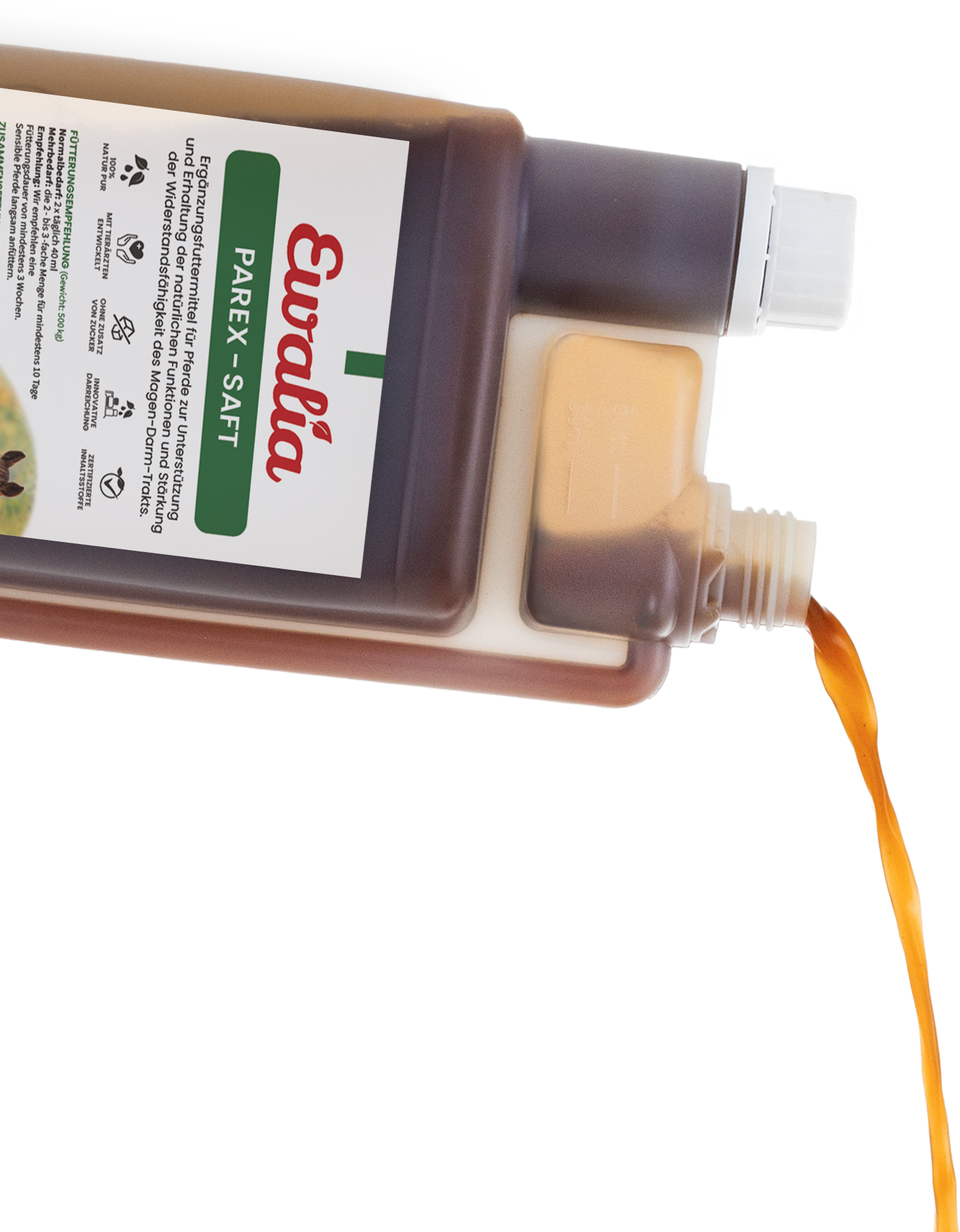 Ewalia Parasitensaft gebe ich zur Unterstützung der Darmflora bei selektiver Entwurmung und mein Pferd wirkt fit und voller Energie