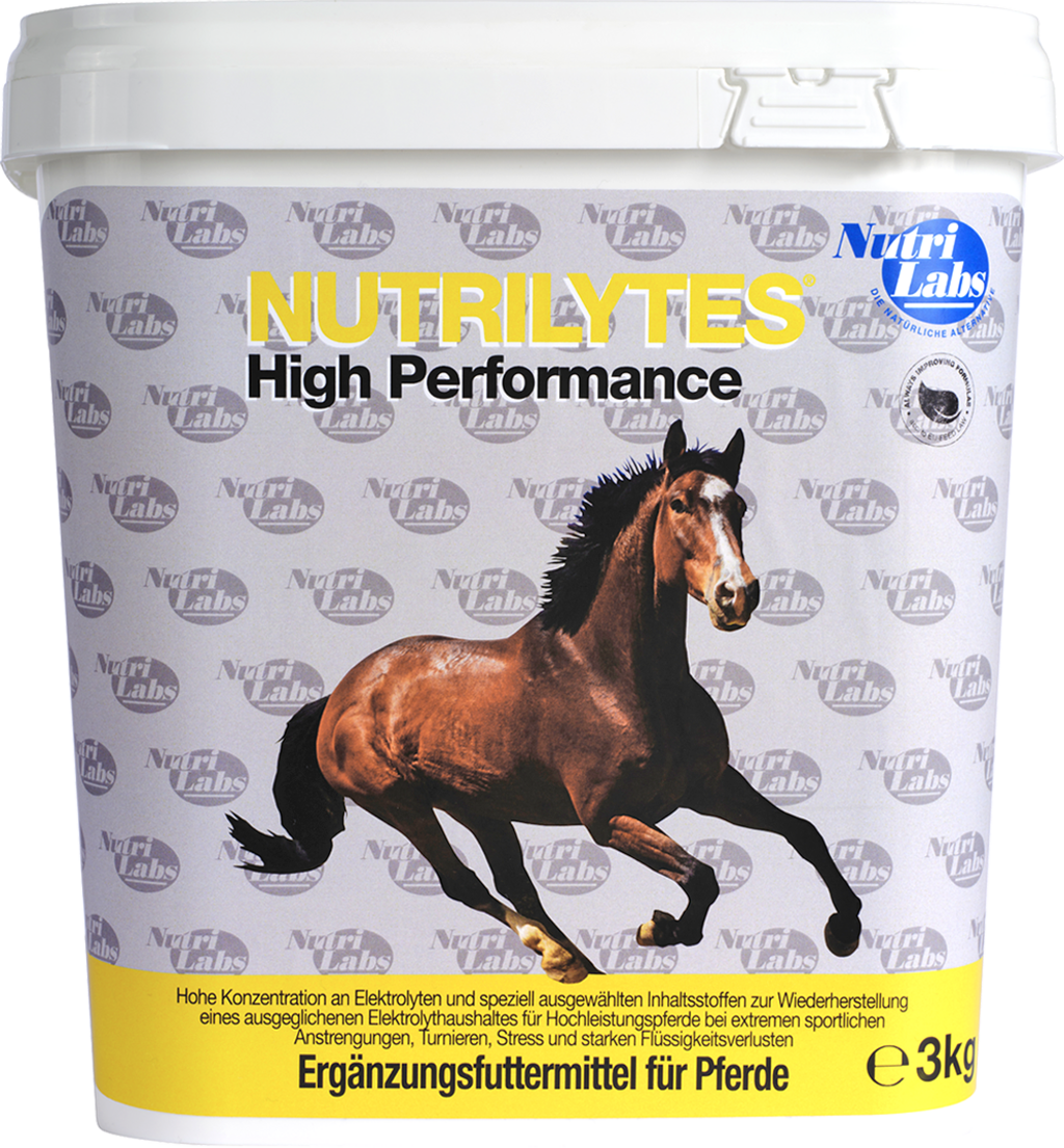 Die Nutrilytes® High Performance Pellets sind der ideale Allrounder für Pferde im Hochleistungssport. Die hochdosierte Formel enthält neben den Basis-Salzen und Mineralstoffen auch Zink, Kupfer und Eisen sowie Aminosäuren, einen Vitaminkomplex und Antioxidantien. So wird das Pferd auch bei besonders starkem Schwitzen optimal unterstützt. Das Ergänzungsfutter kann außerdem bei Hengsten in der Zucht eingesetzt werden, denn ein ausgeglichener Elektrolythaushalt kann zur Verbesserung der Samenqualität beitragen.