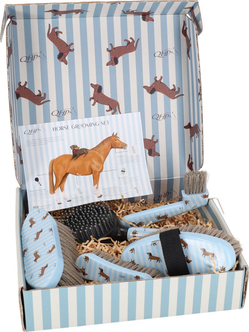 Damit auch das Langhaar perfekt zur Geltung kommt, entwirrst du Mähne und Schweif mit der speziellen Bürste, deren grobe Zinken Knoten sanft lösen, ohne das Haar zu beschädigen. Das einheitliche Design mit den verspielten Dackelmotiven macht dieses Set nicht nur zu einem funktionalen Begleiter, sondern auch zu einem optischen Highlight in deiner Putzkiste.