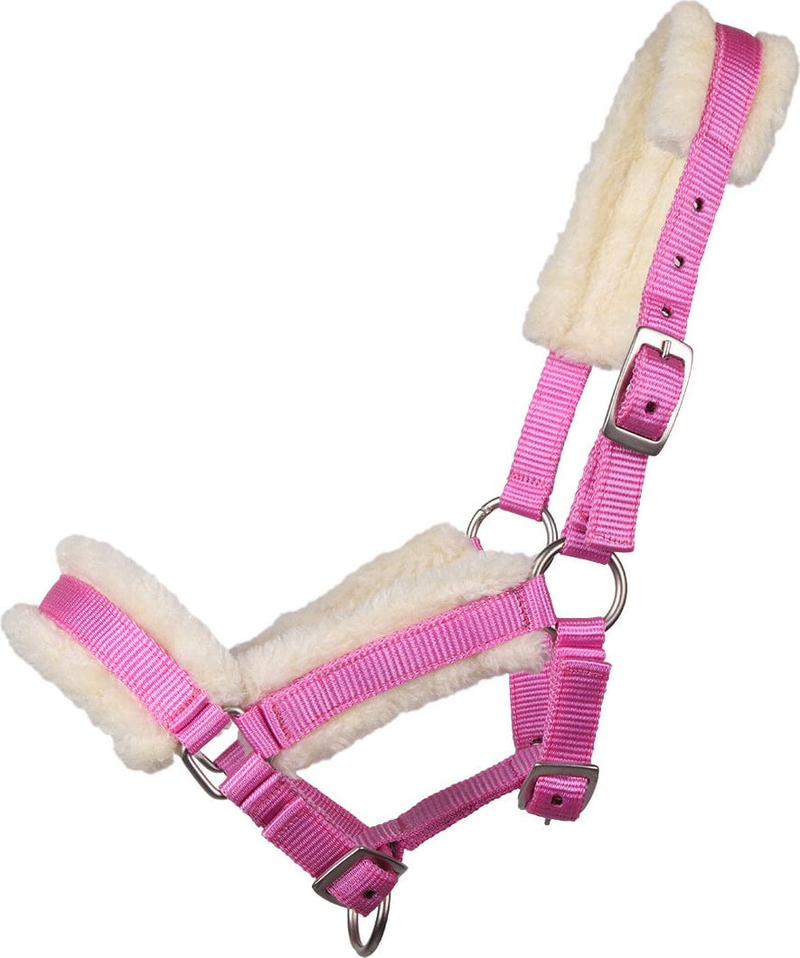 QHP Fohlenhalfter mit Pelz rosa, Falabella