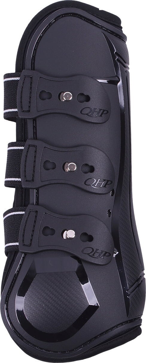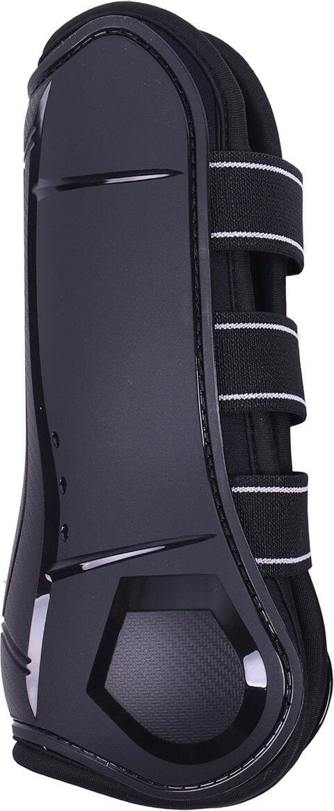 Diese sportlichen Hartschalen-Gamaschen in elegantem Schwarz wurden entwickelt, um die Sehnen an den Hinterbeinen deines Pferdes zuverlässig vor Schlägen und Stößen zu schützen. Sie bieten dank intelligenter Materialtechnologie eine ideale Kombination aus maximalem Schutz und effektivem Hitzemanagement.