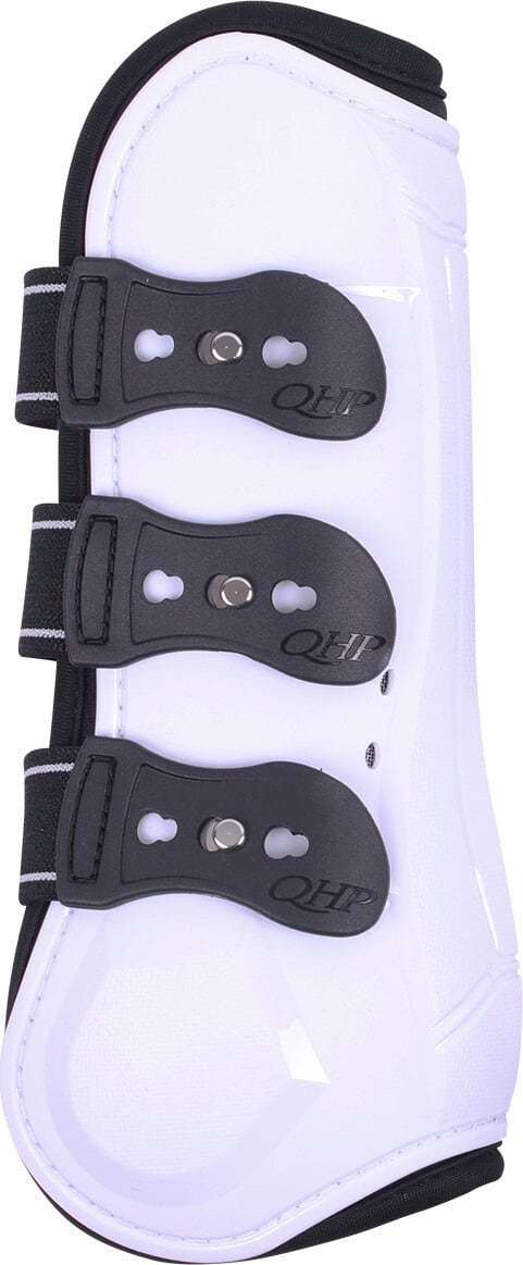 Diese sportlichen Hartschalen-Gamaschen in elegantem Weiß wurden entwickelt, um die Sehnen an den Hinterbeinen deines Pferdes zuverlässig vor Schlägen und Stößen zu schützen. Sie bieten dank intelligenter Materialtechnologie eine ideale Kombination aus maximalem Schutz und effektivem Hitzemanagement.
