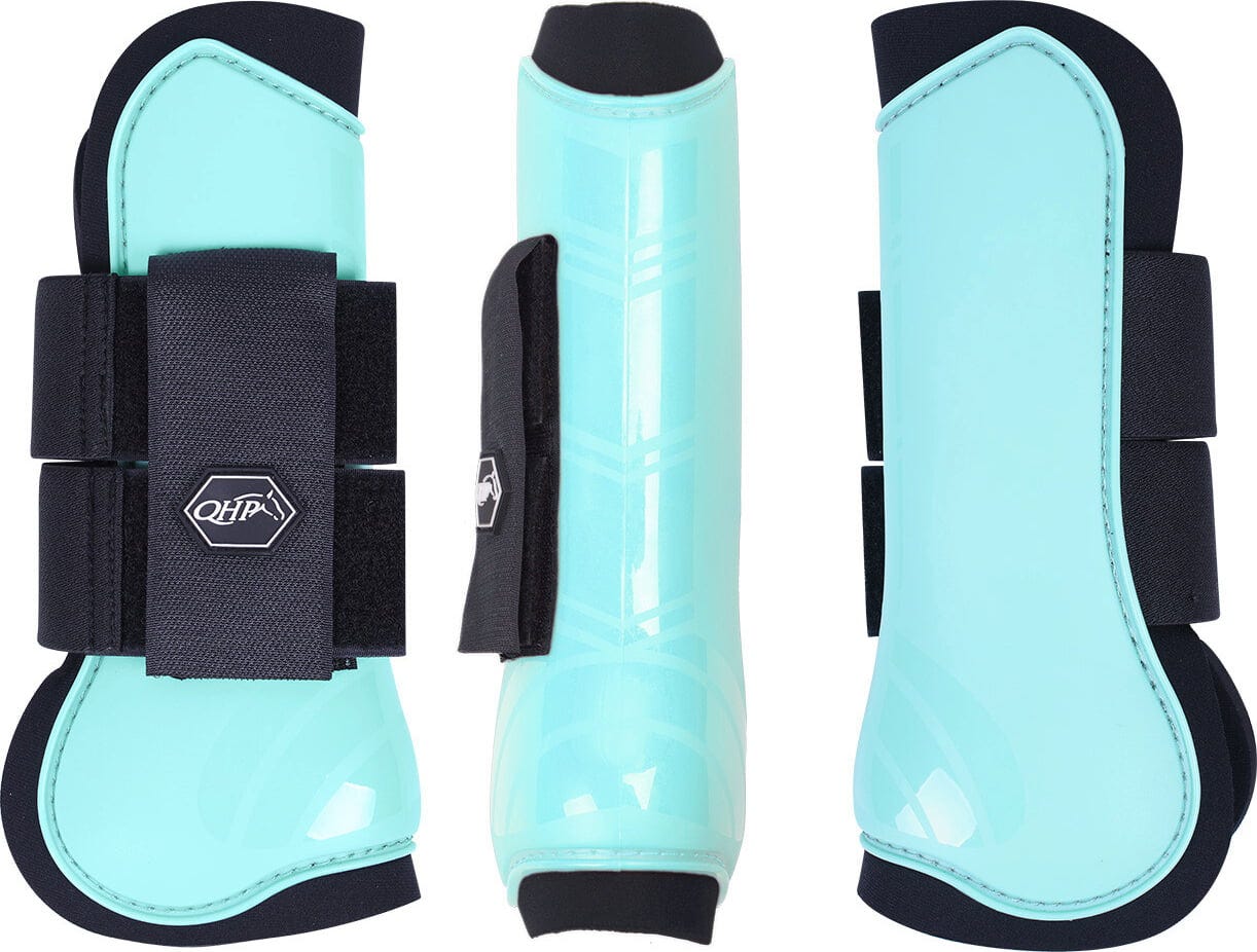 Dieses Set mit zwei anatomisch geformten Hartschalengamaschen in frischem Eisgrün eignet sich ideal als Schutz für die Beine deines Pferdes im Training und in Turnieren.