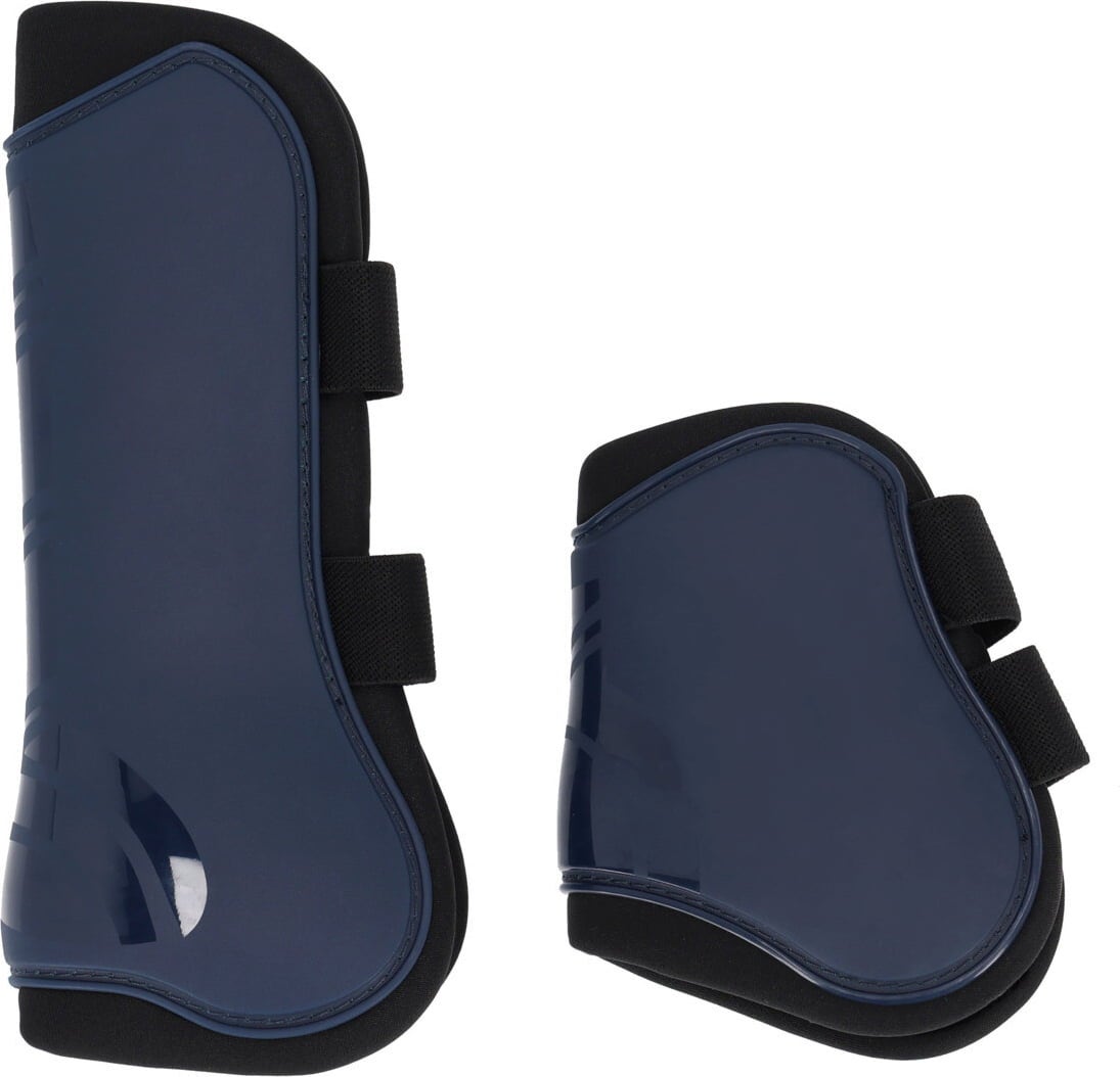 Mit diesem kompletten Gamaschen-Set von QHP schützt du die empfindlichen Sehnen, die Vorder- und Hinterbeine deines Pferdes zuverlässig vor Stößen und Streifen. Das Set bietet dir zwei Gamaschen für die Vorderbeine und zwei Streichkappen für die Hinterbeine und sorgt damit für einen vollständigen Schutz während des gesamten Trainings.