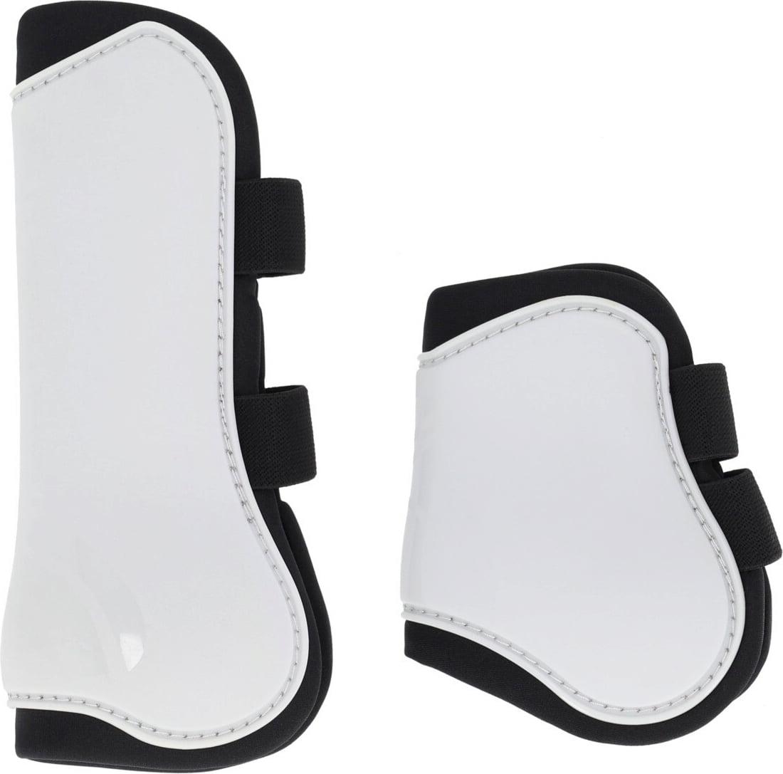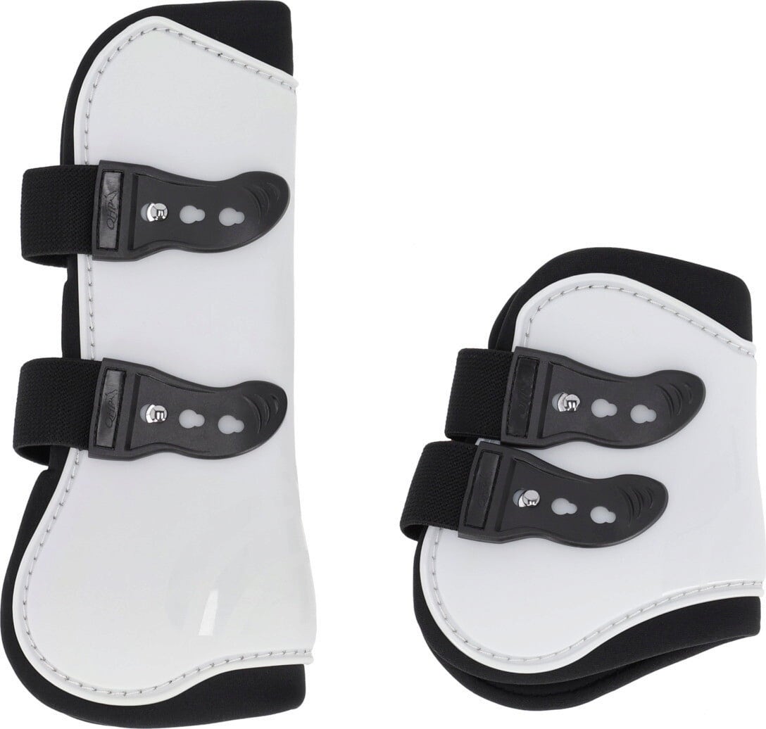 Mit diesem kompletten Gamaschen-Set von QHP schützt du die empfindlichen Sehnen, die Vorder- und Hinterbeine deines Pferdes zuverlässig vor Stößen und Streifen. Das Set bietet dir zwei Gamaschen für die Vorderbeine und zwei Streichkappen für die Hinterbeine und sorgt damit für einen vollständigen Schutz während des gesamten Trainings.