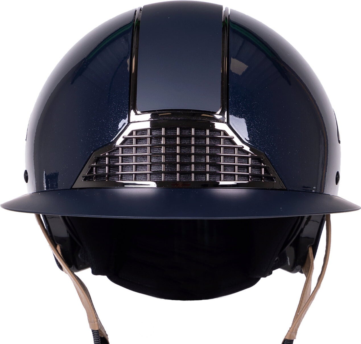 Dieser auffällige Reithelm von QHP ist die perfekte Wahl für alle, die Wert auf Stil und Komfort legen. Die Außenschale begeistert durch ein elegantes Finish aus lackierter, matter Oberfläche, die durch ein leichtes Glitzern eine edle Note erhält – ein echter Hingucker! Das besondere Polovisier sorgt nicht nur für ein luxuriöses Erscheinungsbild, sondern bietet dir auch eine verbesserte Sicht bei Sonnenschein.