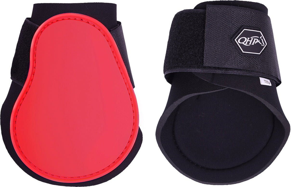 Dieses Set aus zwei offenen Streichkappen in leuchtendem Rot schützt die Hinterbeine deines Pferdes im Training und beim Springen und dämpft Stöße sowie Schläge zuverlässig ab.