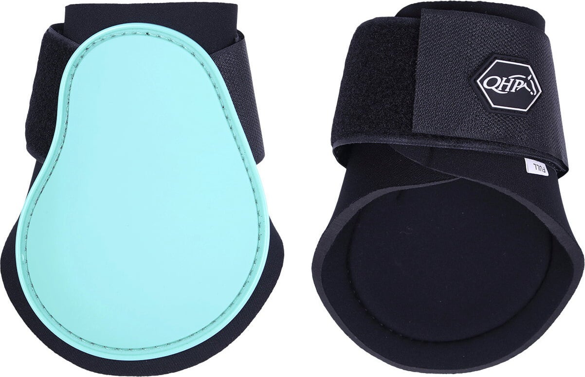 Dieses Set aus zwei offenen Streichkappen in kühlem Eisblau schützt die Hinterbeine deines Pferdes im Training und beim Springen und dämpft Stöße sowie Schläge zuverlässig ab.
