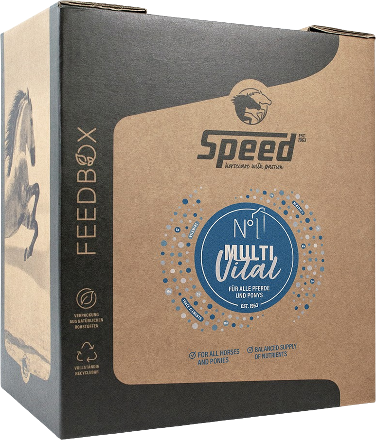 Mit dem Ergänzungsfuttermittel SPEED No. 1 MultiVital erhältst Du einen sorgfältig abgestimmten Mix aus Mineralstoffen, Spurenelementen und Vitaminen – entwickelt für Pferde und Ponys aller Alters‑ und Nutzungsgruppen. Produziert in Deutschland unter höchsten Qualitätsstandards, überzeugt das Produkt mit seiner hohen Akzeptanz und plastikfreier Verpackung. So kannst Du Deinem Pferd eine moderne, durchdachte Ergänzung bieten, die sowohl in der Zusammenstellung als auch im Handling überzeugt.