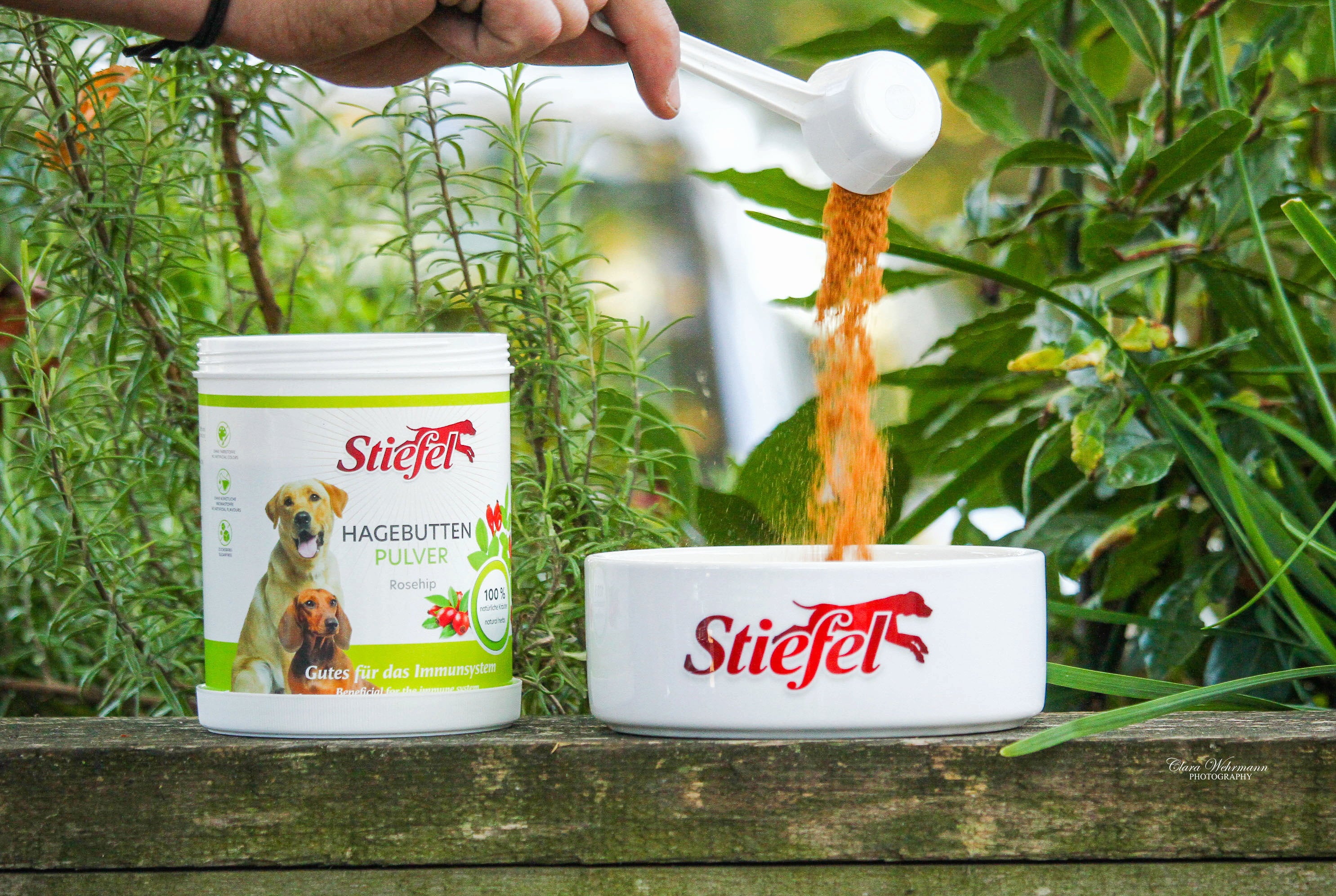 Stiefel Hagebuttenpulver wird fein vermahlen und dient zur Ergänzung im Hauptfutter deines Hundes. Hagebutte kann zur Unterstützung des Immunsystems beitragen. Das Pulver von Stiefel kommt ganz ohne Zucker, künstliche Aromastoffe und Farbstoffe aus.