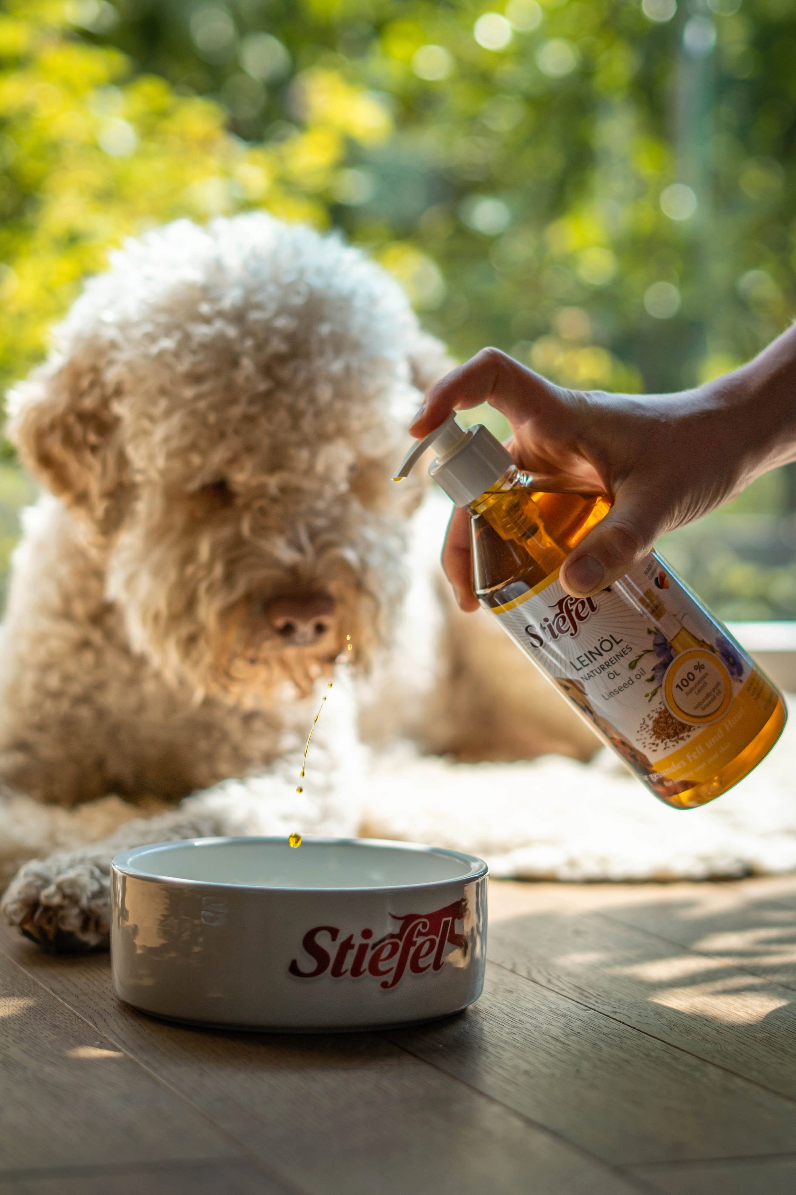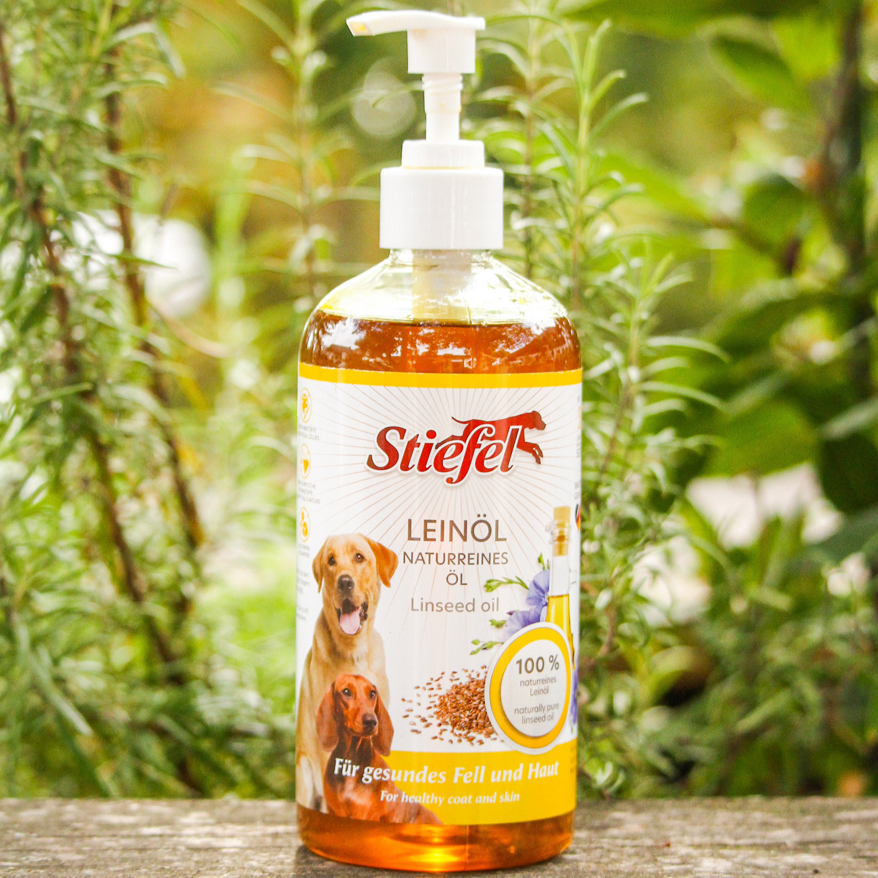 Stiefel Leinöl ist ein kaltgepresstes Naturprodukt. Stiefel Leinöl kann durch seine wertvolle Zusammensetzung Fell und Haut des Hundes unterstützen. Auch zur Unterstützung einer normalen Verdauung kann Leinöl über das Futter geträufelt werden.