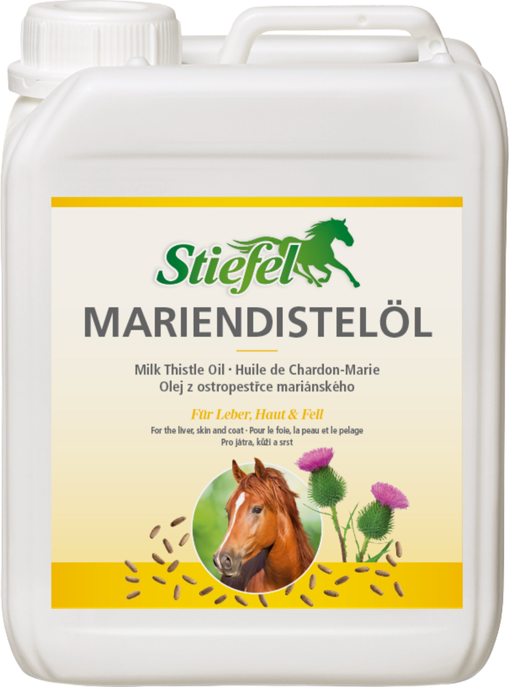 Stiefel Mariendistelöl ist ein 100 % naturreines Öl. Mariendistelöl kann den Leberzellstoffwechsel anregen und damit die Gesundheit fördern. Das Öl kann sich ebenfalls positiv auf Haut und Fell des Pferdes auswirken.