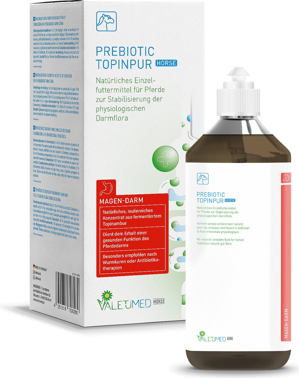 Das flüssige Einzelfuttermittel von Valetumed besteht aus einem reinen Konzentrat der Topinamburknolle. Es ist reich an Inulin und wurde speziell entwickelt, um die normale Darmflora deines Pferdes zu unterstützen. Das Produkt bietet eine wertvolle Nahrungsgrundlage für nützliche Mikroorganismen im Verdauungstrakt und kann dazu beitragen, das natürliche Gleichgewicht im Dickdarm zu begleiten.