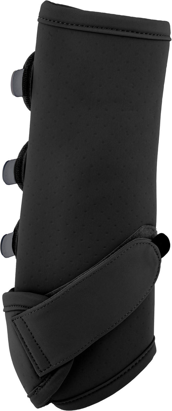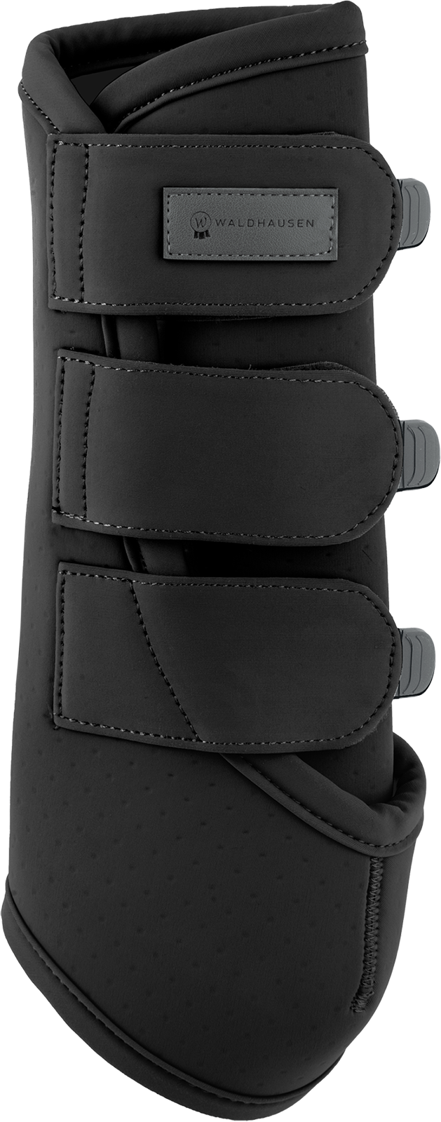 Besonderes Augenmerk wurde auf die Bewegungsfreiheit gelegt: Eine anatomisch geformte Aussparung im vorderen Bereich stellt sicher, dass das Fesselgelenk bei jedem Sprung oder jeder Wendung uneingeschränkt arbeiten kann. Die robusten Klettverschlüsse mit gummierten Anfassern sorgen für einen festen Sitz und lassen sich auch mit Handschuhen mühelos bedienen. In der Größe L ist die Gamasche mit drei Klettverschlüssen ausgestattet, um eine perfekte Druckverteilung am Pferdebein zu garantieren.