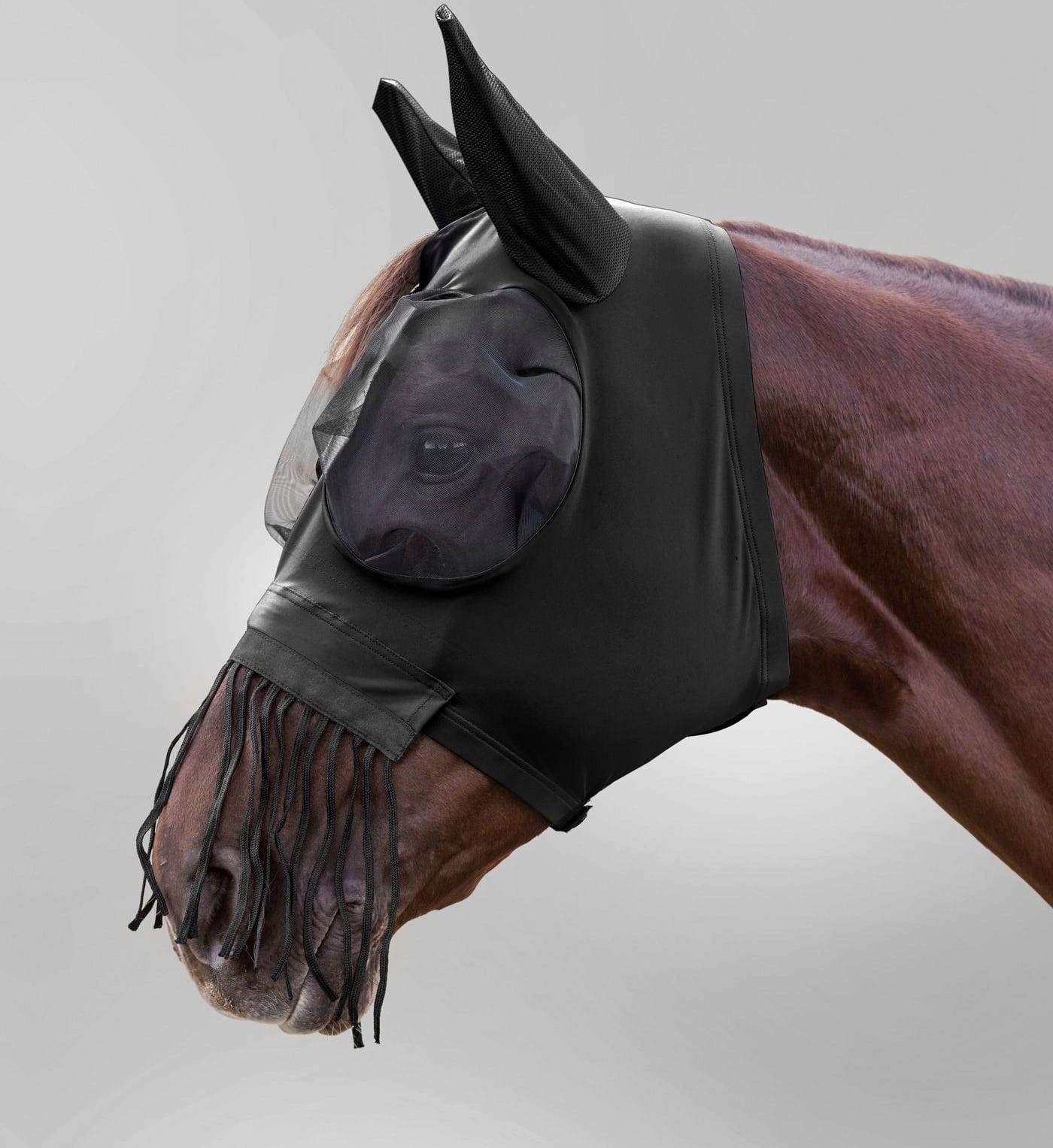 Fliegenmaske Puck mit Nasenfransen, schwarz