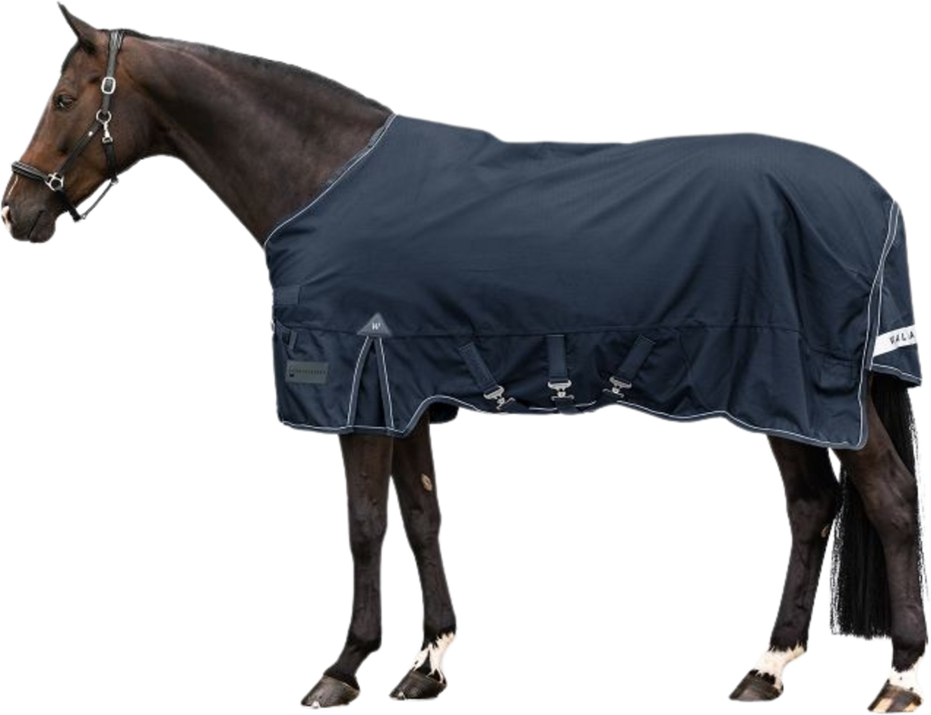 Die Passform ist durchdacht: Der praktische V-Frontverschluss garantiert einen stabilen Sitz und verhindert in Kombination mit den drei Bauchgurten lästiges Verrutschen. Bewegungsfreiheit ist durch die großzügige Gehfalte stets gewährleistet. Für noch mehr Flexibilität im Winter besitzt diese Decke Befestigungsschlaufen – so kannst du jederzeit ein separat erhältliches Halsteil anbringen. Die Decke verfügt über einen extragroßen Schweiflatz, zudem sorgt die reflektierende Biese für beste Sichtbarkeit in der Dämmerung.